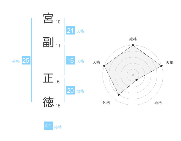 宮副 正徳さんの天格は21画の5点!