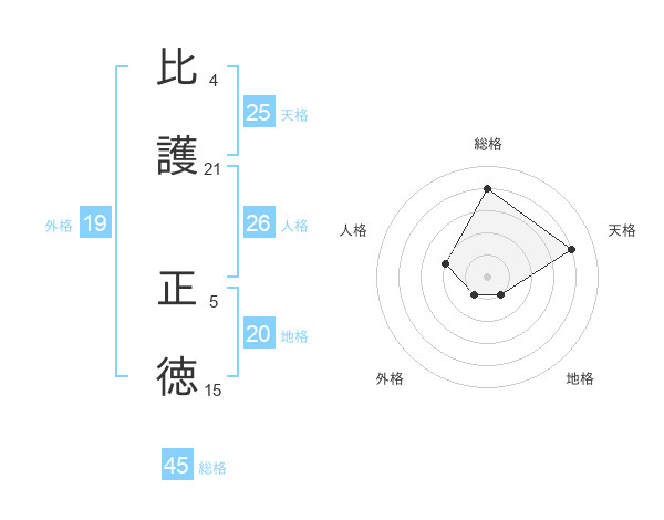 比護 正徳さんの総格は45画の4点!