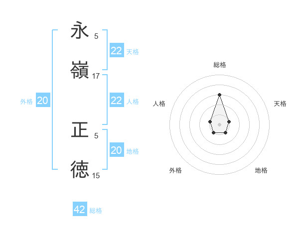 永嶺 正徳さんを姓名の画数から五運を鑑定