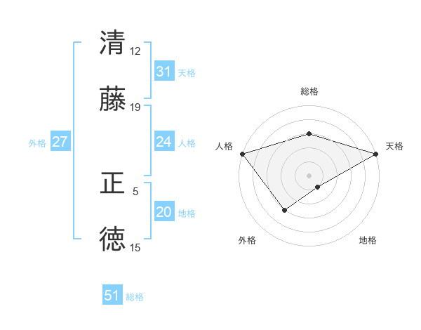 清藤 正徳さんの総格は51画の3点!