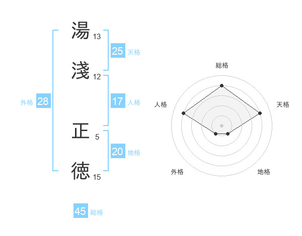 湯淺 正徳さんの外格は28画の1点!