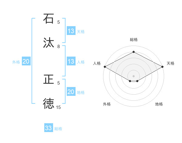 石汰 正徳さんを姓名の画数から五運を鑑定