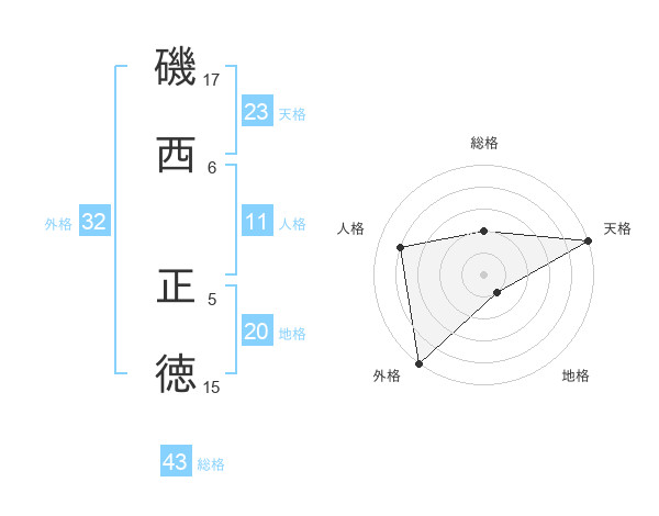 磯西 正徳さんの外格は32画の5点!