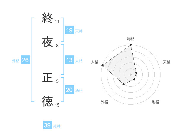 終夜 正徳さんを姓名の画数から五運を鑑定