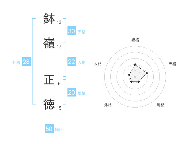 鉢嶺 正徳さんの総格は50画の2点!