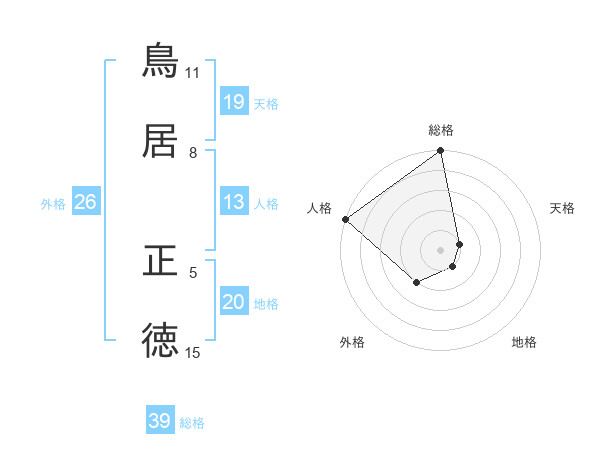 鳥居 正徳さんを姓名の画数から五運を鑑定