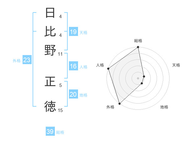 日比野 正徳さんを姓名の画数から五運を鑑定