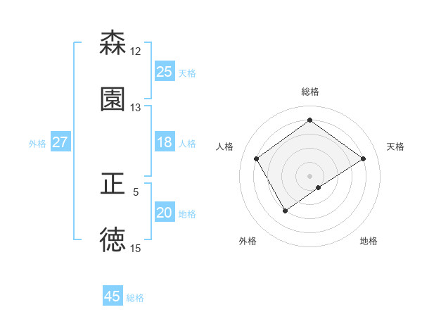 森園 正徳さんの総格は45画の4点!