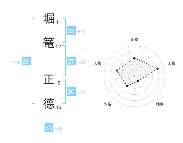 堀篭 正德さんの総格は53画の3点!