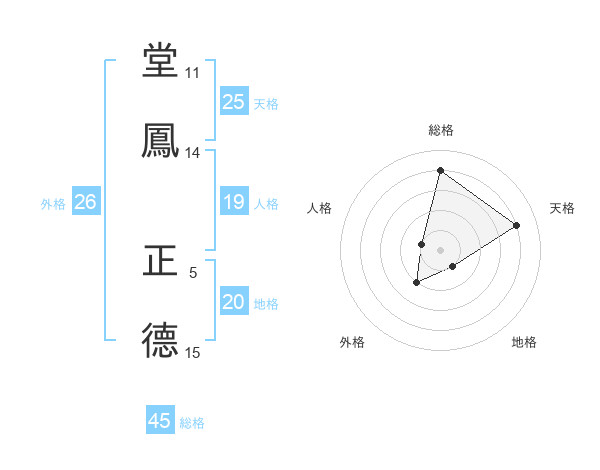 堂鳳 正德さんの総格は45画の4点!