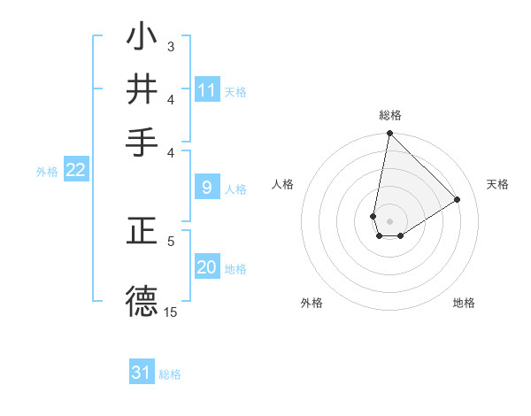 小井手 正德さんの外格は22画の1点!