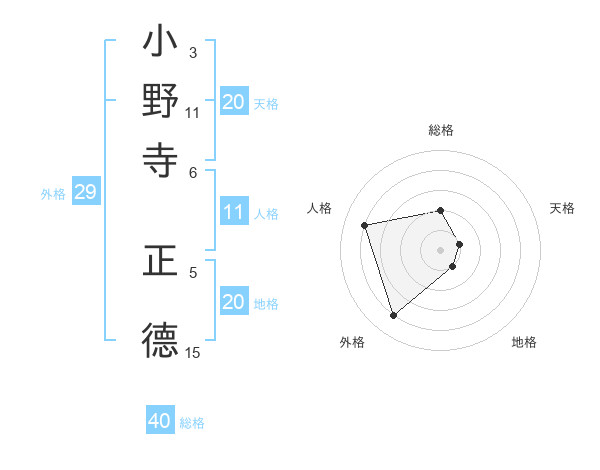 小野寺 正德さんの天格は20画の1点!