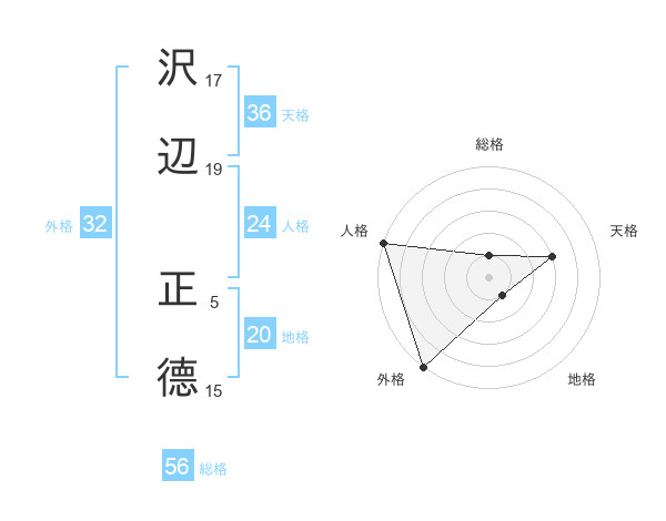 沢辺 正德さんを姓名の画数から五運を鑑定