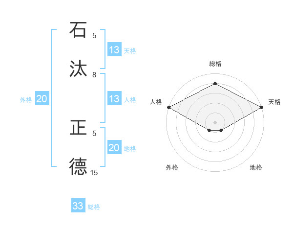 石汰 正德さんの天格は13画の5点!