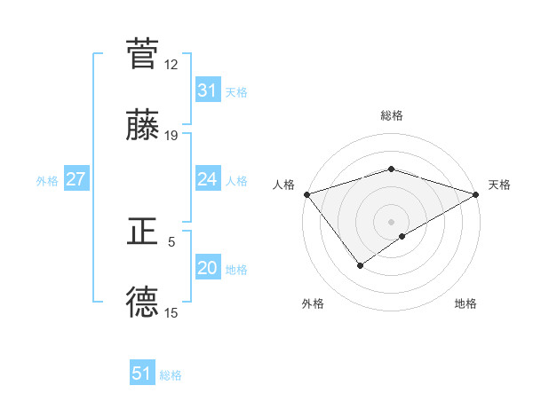 菅藤 正德さんを姓名の画数から五運を鑑定