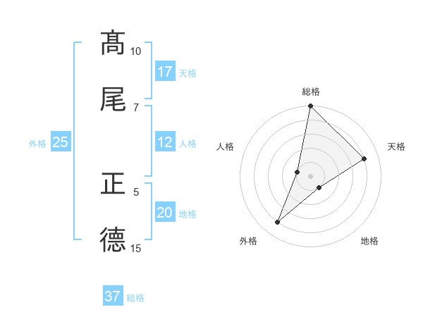 髙尾 正德さんの総格は37画の5点!