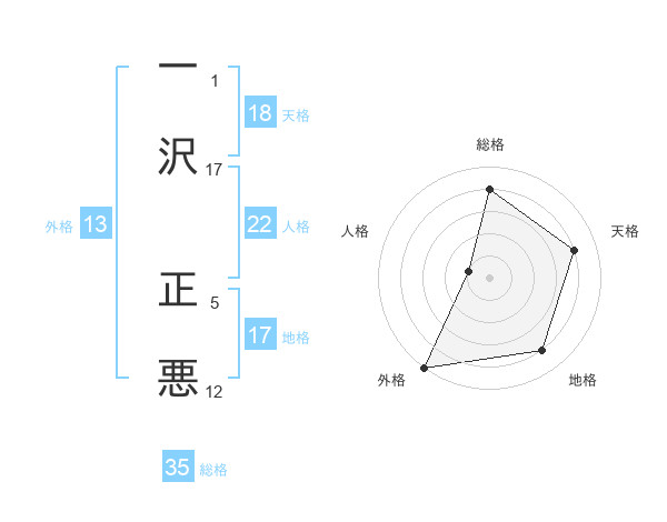 一沢 正悪さんの外格は13画の5点!