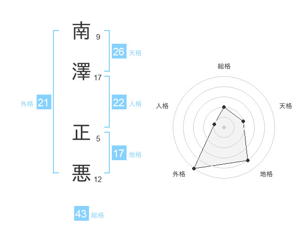 南澤 正悪さんを姓名の画数から五運を鑑定