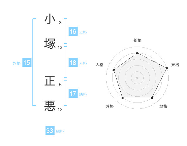 小塚 正悪さんの天格は16画の5点!