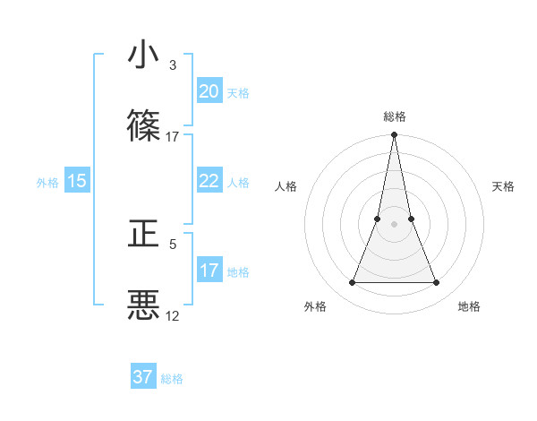 小篠 正悪さんの総格は37画の5点!