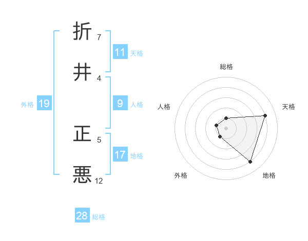 折井 正悪さんの総格は28画の1点!