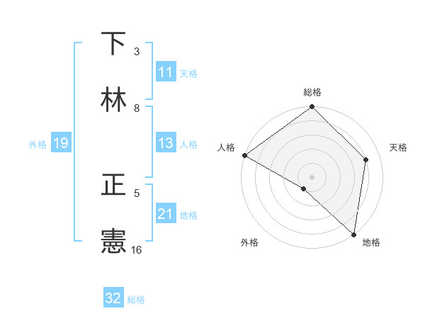下林 正憲さんの総格は32画の5点!
