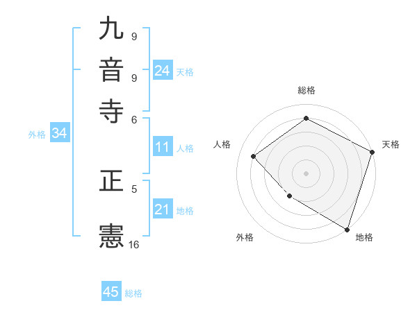 九音寺 正憲さんの総格は45画の4点!