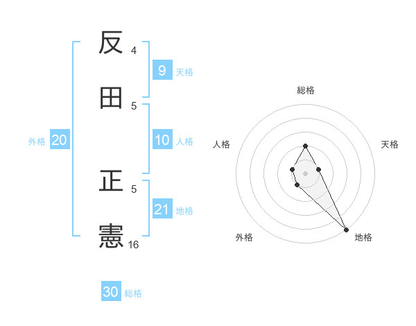 反田 正憲さんの地格は21画の5点!