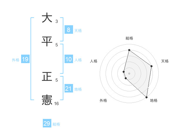 大平 正憲さんを姓名の画数から五運を鑑定