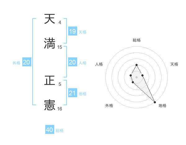 天満 正憲さんの総格は40画の2点!