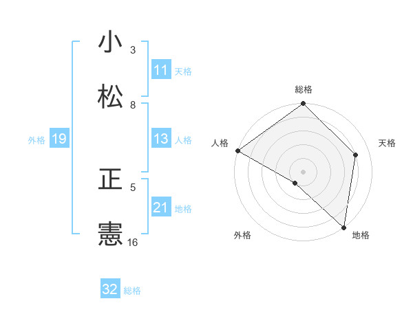 小松 正憲さんの総格は32画の5点!