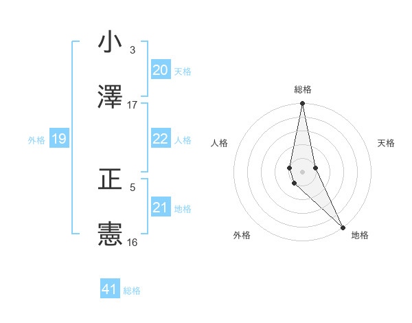 小澤 正憲さんの総格は41画の5点!