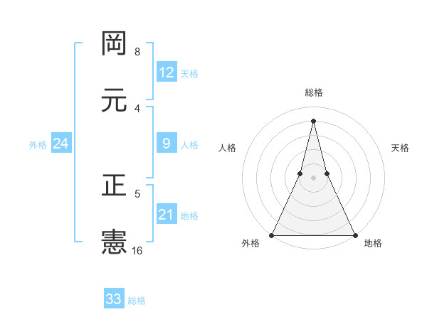 岡元 正憲さんの総格は33画の4点!