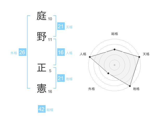 庭野 正憲さんの地格は21画の5点!