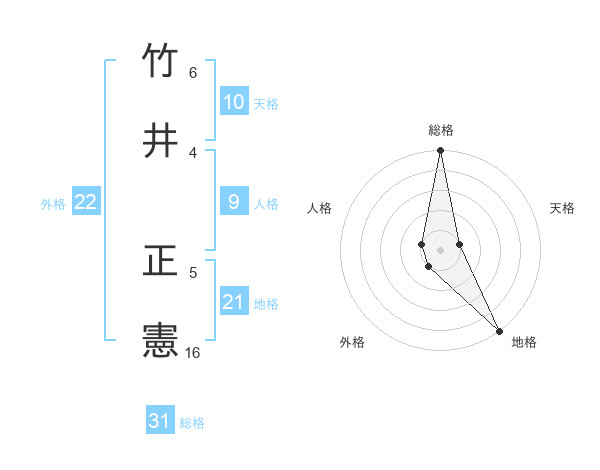 竹井 正憲さんの総格は31画の5点!