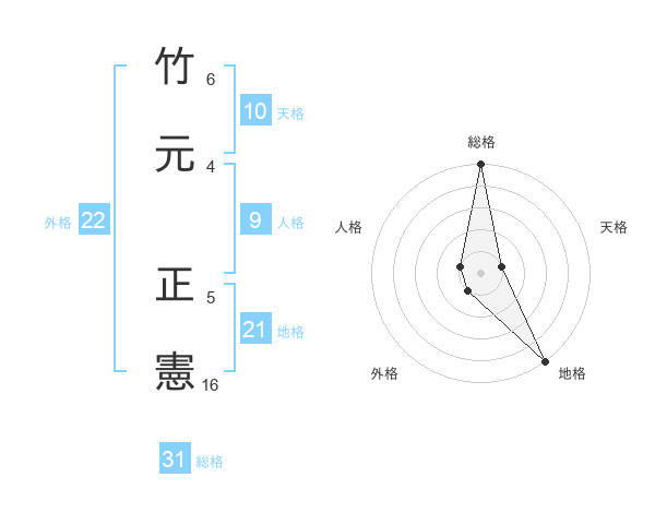 竹元 正憲さんの外格は22画の1点!