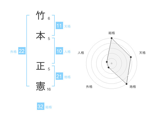 竹本 正憲さんの総格は32画の5点!