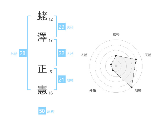 蛯澤 正憲さんの天格は29画の4点!
