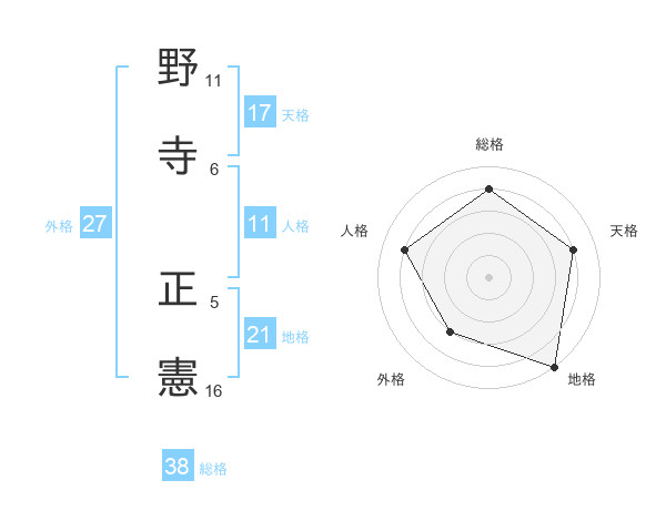 野寺 正憲さんを姓名の画数から五運を鑑定