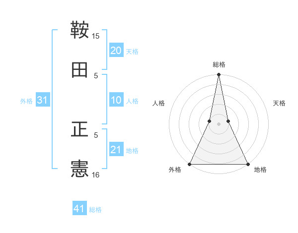 鞍田 正憲さんの総格は41画の5点!