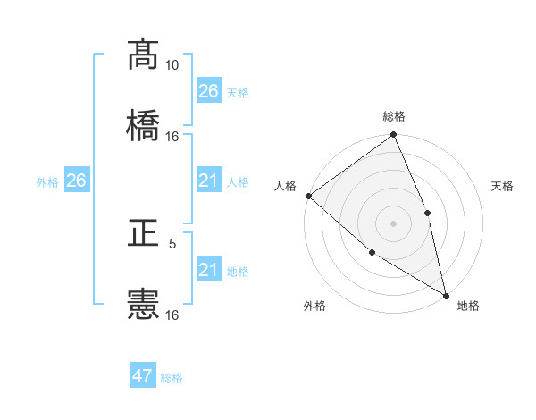 髙橋 正憲さんの総格は47画の5点!