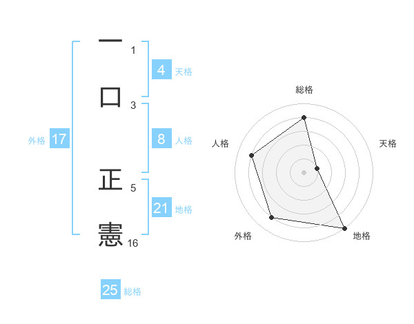 占い結果は姓名判断である以上、良い場合も悪い場合もありますが、決してお名前を誹謗中傷するものでなく、画数の自動計算によって得られたものです。また、本サイトの検索によって得られた鑑定結果で、第三者を誹謗中傷したり名誉を棄損するような行為を禁じます。