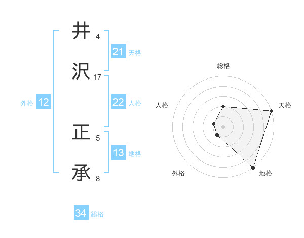 井沢 正承さんの天格は21画の5点!