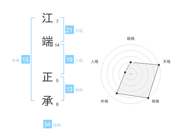 江端 正承さんの天格は21画の5点!