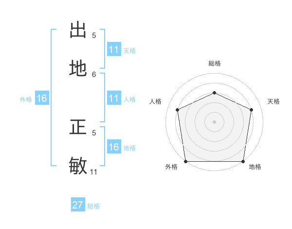 出地 正敏さんの地格は16画の5点!