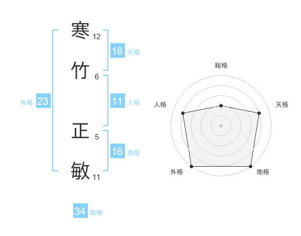 寒竹 正敏さんを姓名の画数から五運を鑑定