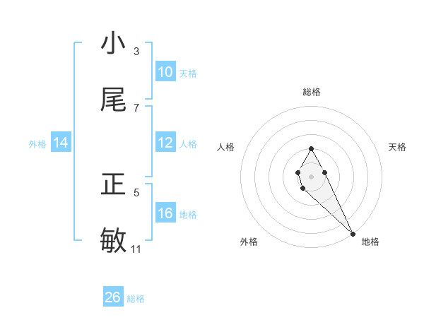 小尾 正敏さんの総格は26画の2点!