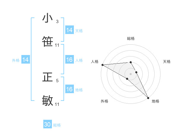 小笹 正敏さんを姓名の画数から五運を鑑定