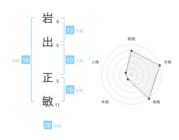 岩出 正敏さんの総格は29画の4点!