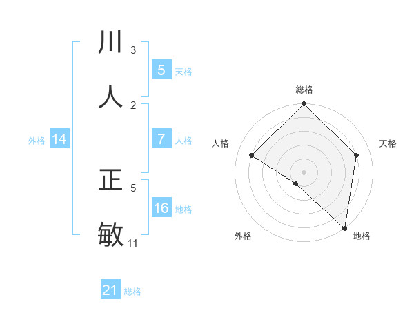 川人 正敏さんの総格は21画の5点!